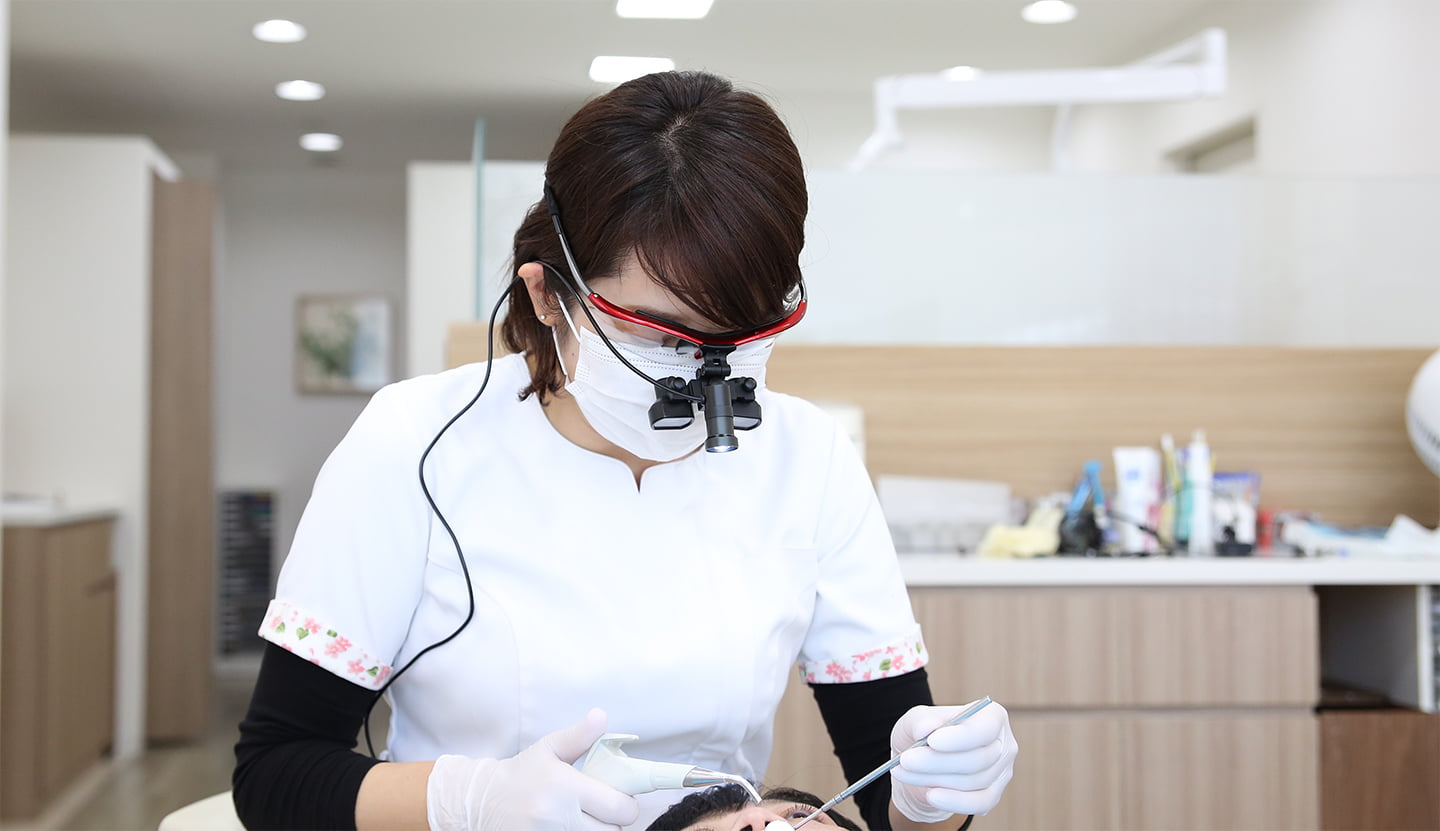 当院では、院長だけでなく歯科衛生士もルーペ(拡大鏡)を使用しております。肉眼では見えにくい細部まで確認し、精度の高い診断と治療を実現するためです。