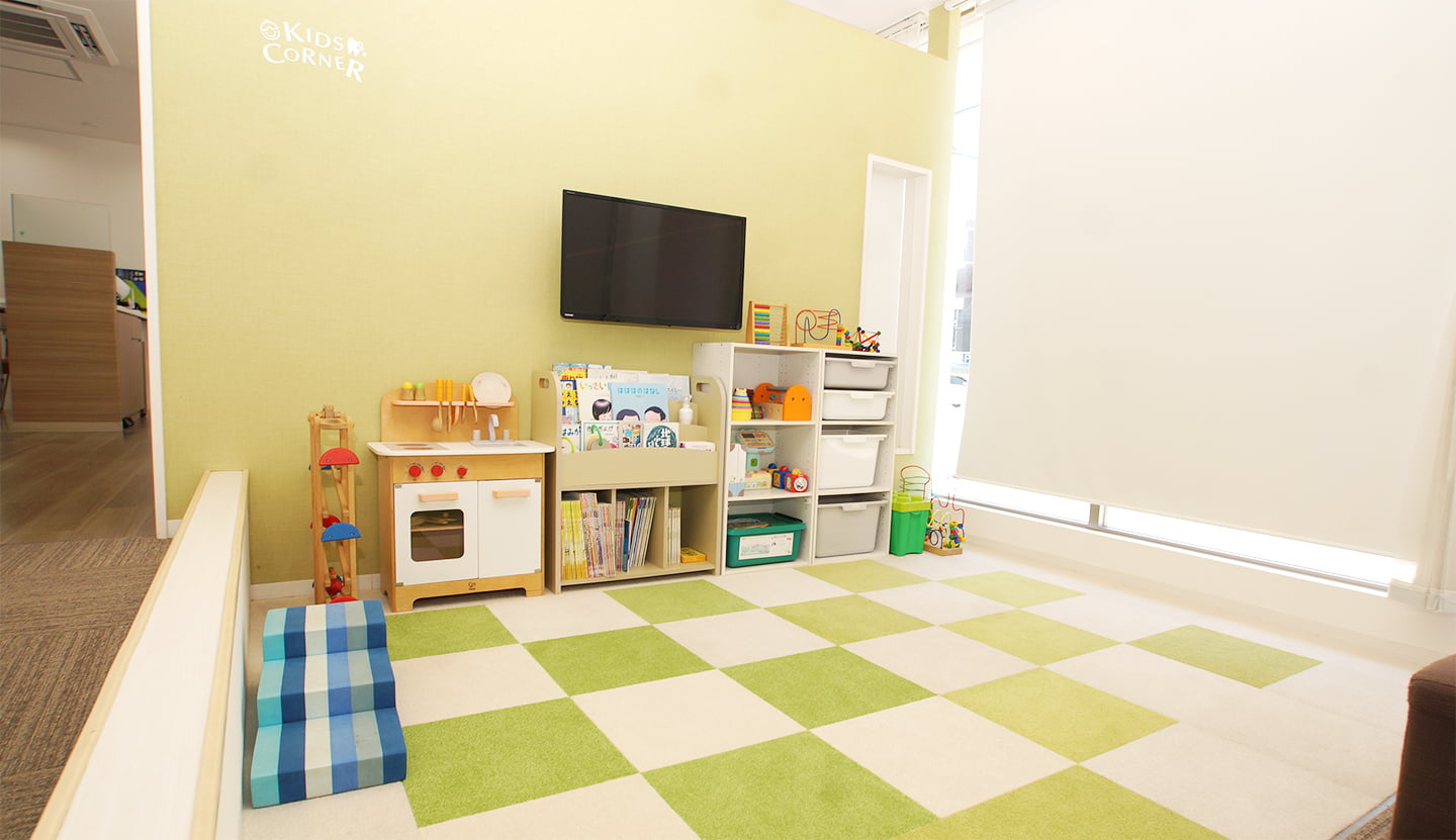 お子様連れの方にも安心してご来院いただけるようキッズスペースをはじめ、バウンサーやおむつ交換台、おむつ・おしりふきなどもご用意しております。