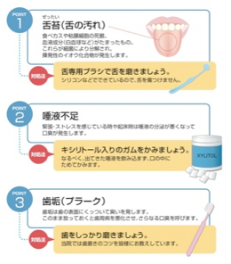 お口のにおい、気になりませんか? 2024.9.26 ブログ 何となく口が臭っているような気がする事ありませんか? 口臭の原因は大きく分けて3つです。※この他に虫歯や歯周病による口臭もあります。この場合は歯科医院で早めに治療を受けましょう。 前の記事へ 一覧へ戻る 次の記事へ